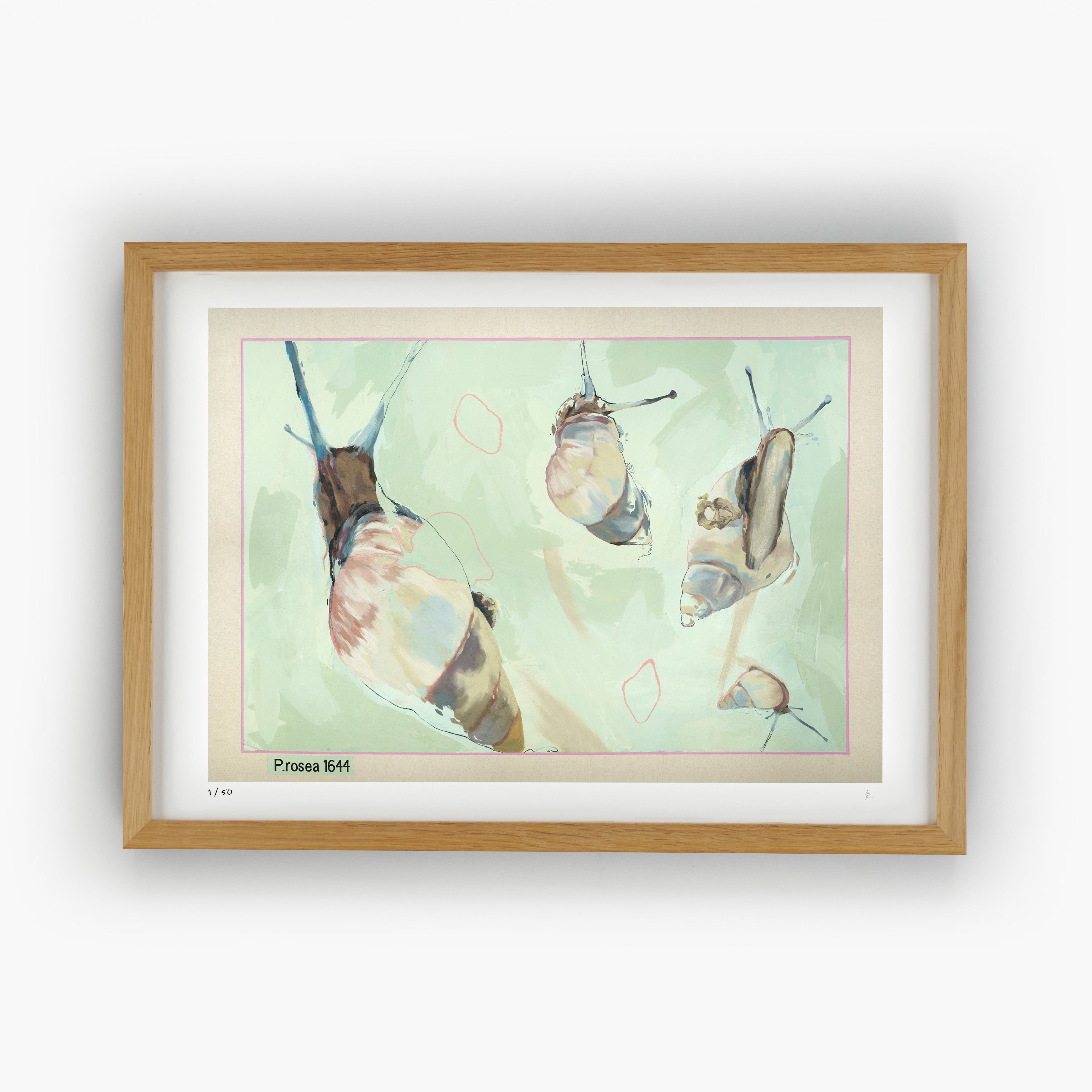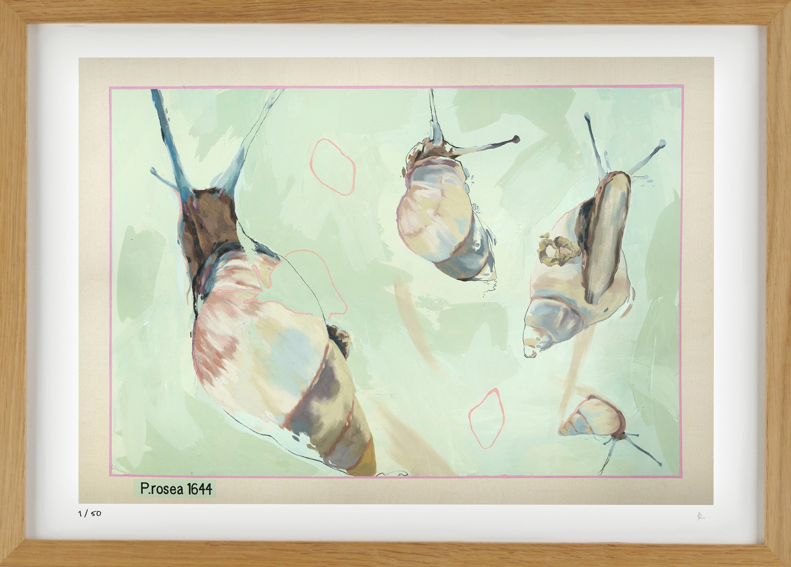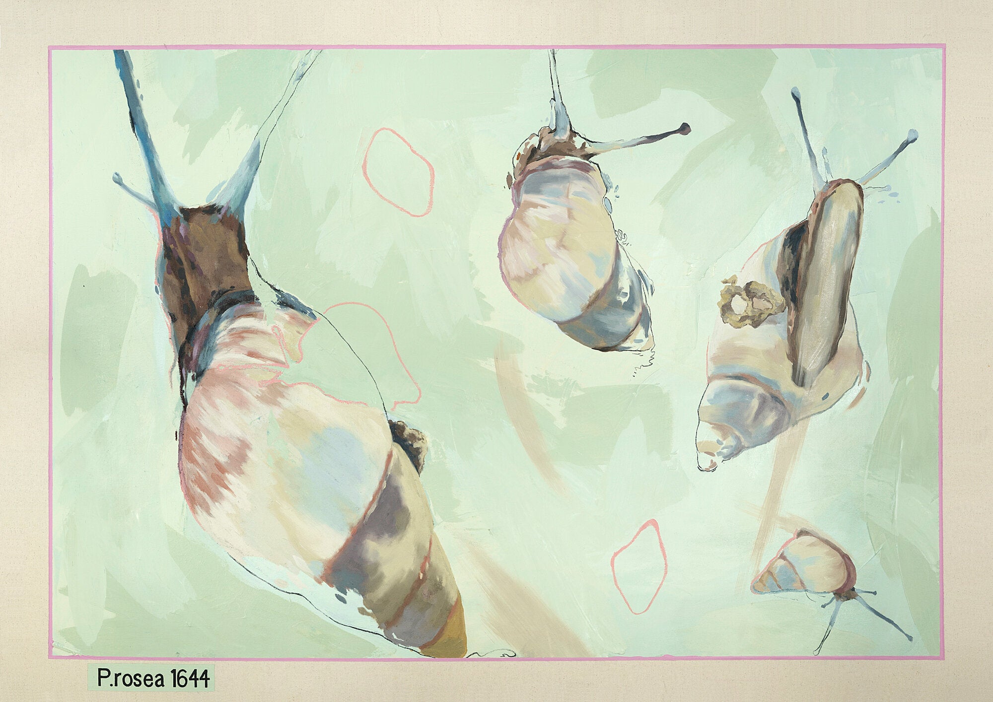 The artworks are displaying two species I studied during my time working with London Zoo. They are the Humbodlt penguin and the Partula snail. The works represent the story I have learned about both and their journeys around the world and the efforts made to support and rewild them by the staff working at ZSL. The works are titled "Enrichment" for the Humboldt penguins and "The big bad Wolf" for the Partula snails.